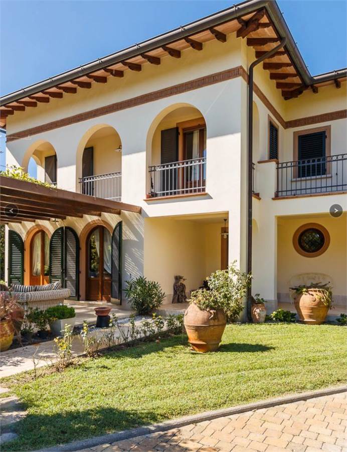 Vittoria Apuana Villa singola con giardino di 900 mq in affitto mesi estivi. La casa si sviluppa su tre livelli: al piano terra ampio ingresso - zona living ampia cucina abitabile, zona lavanderia accessoriata con doppia lavatrice e doppia asciugatrice, una camera da letto, un bagno di servizio e un bagno completo con doccia; al primo piano ampio ingresso e cinque camere matrimoniali di cui tre con bagno interno, e un bagno esterno. All'esterno tre verande coperte abitabili di cui una adibita a pranzo, una con mini-piscina/Jacuzzi. Disponibilità di due posti auto coperti e due scoperti, disponibili anche all'uso tre bici.