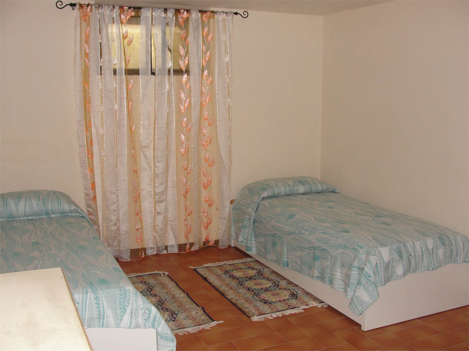 Al primo piano quattro camere con tre bagni.