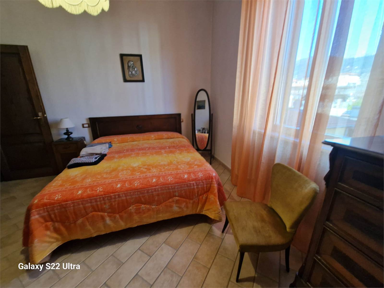 L'appartamento è di 150 mq, ed è tenuto molto bene., è composto da tre camere (due matrimoniali, 1 singola) due bagni, cucina abitabile con camino, vano ripostiglio.